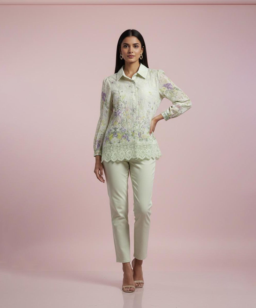 LA00169-Korean shirt-Imported meterial-Colour-Green,Gold