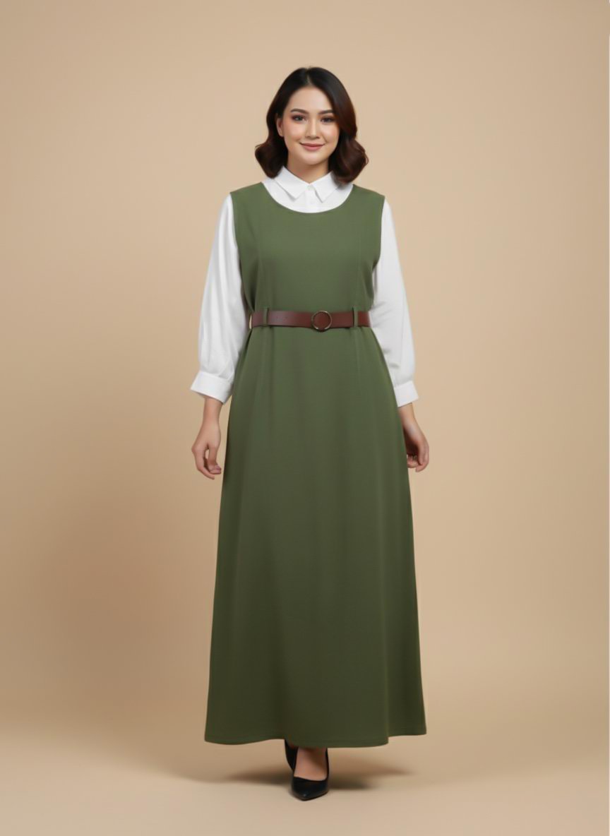 LA00161-Two piece Pinafore set-Fabric-Blend cotton-Color-Maroon-Green-Free size