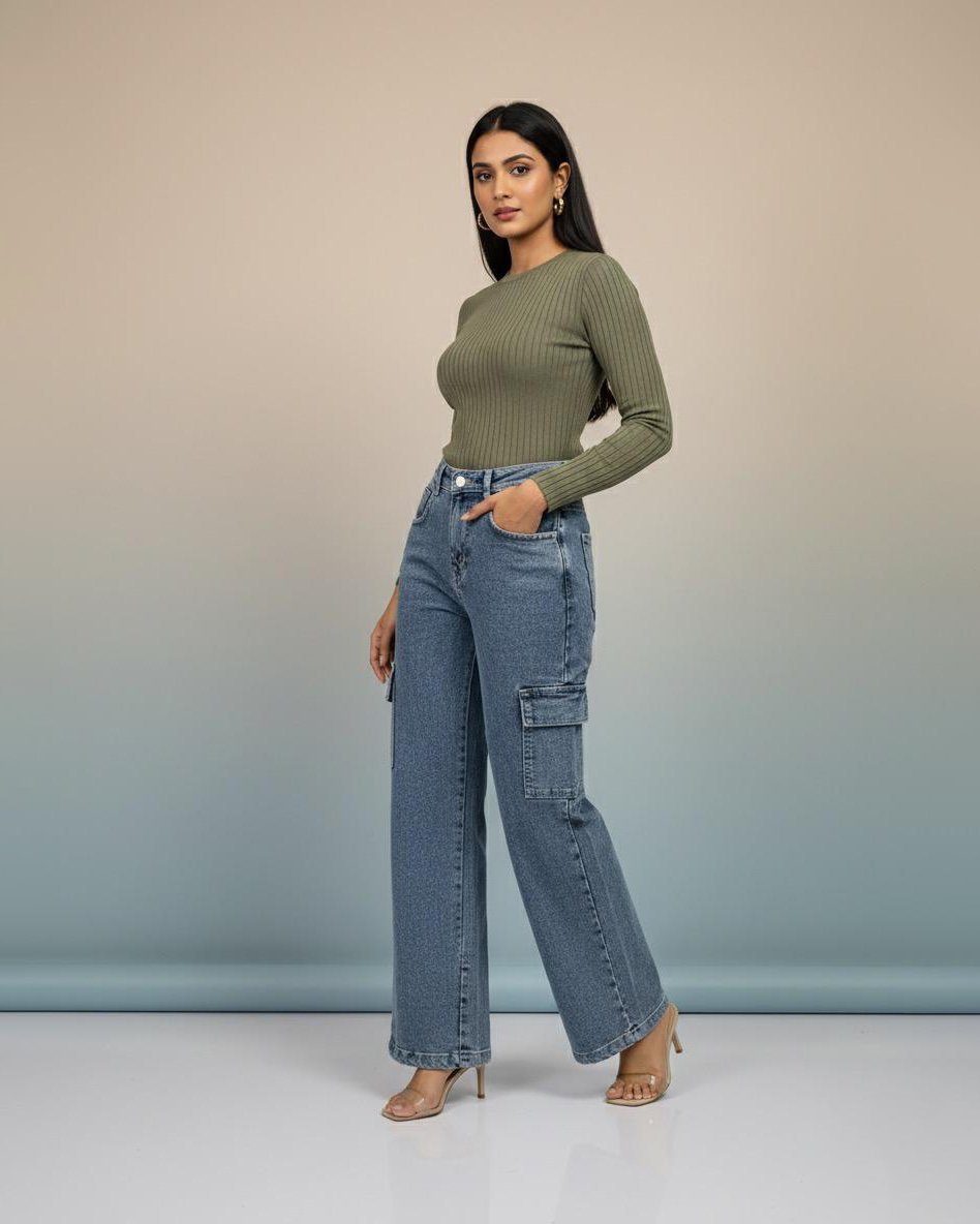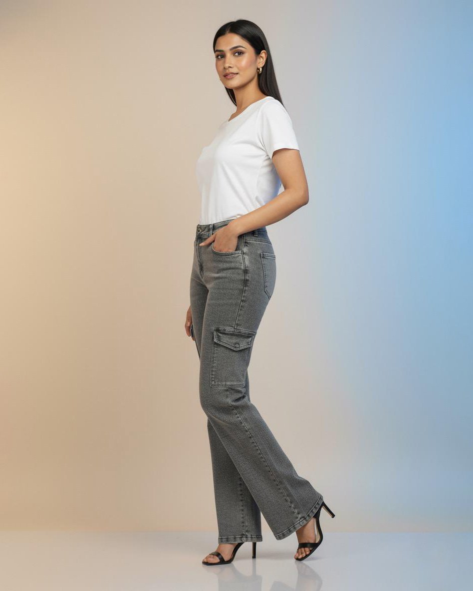 LA00151-Jeans pants(Denim-High-Rice stretchable)-Colour-Ash(faided)-Size-(28 30 32)