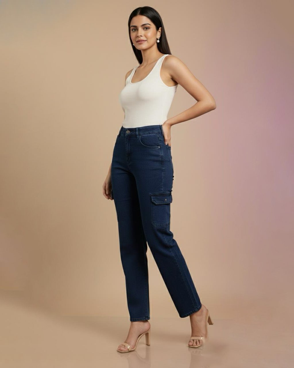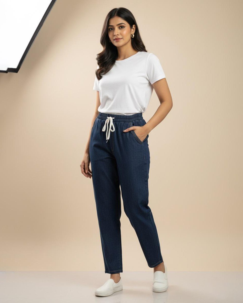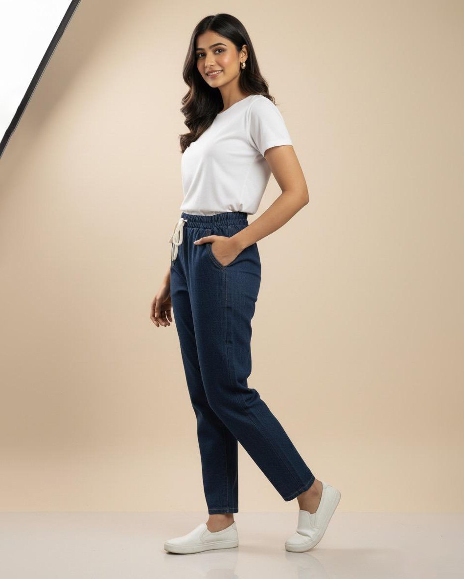 LA00151/1-Jeans pants(Denim-High-Rice stretchable)-Colour-Navy blue-Size-(28 30 32)
