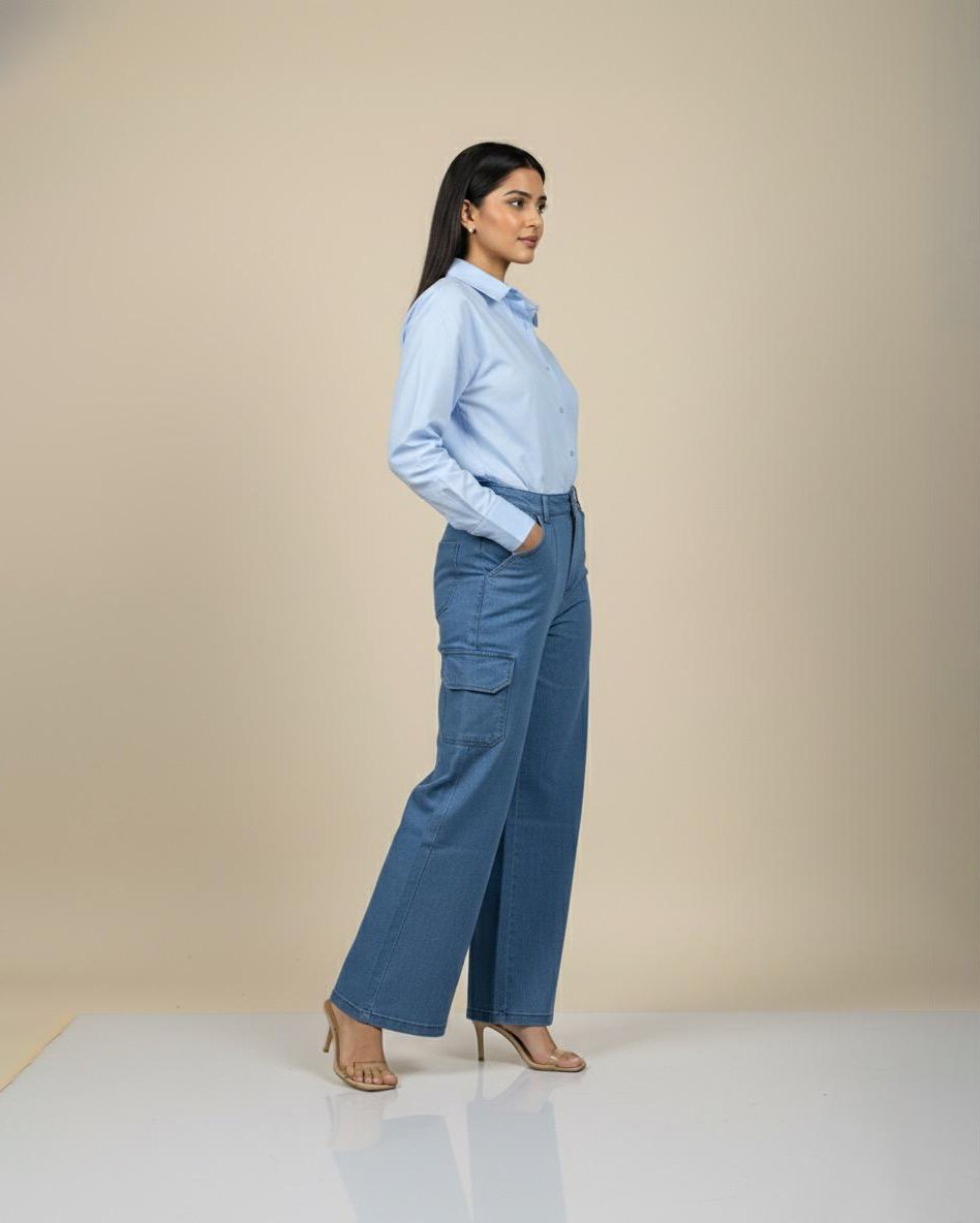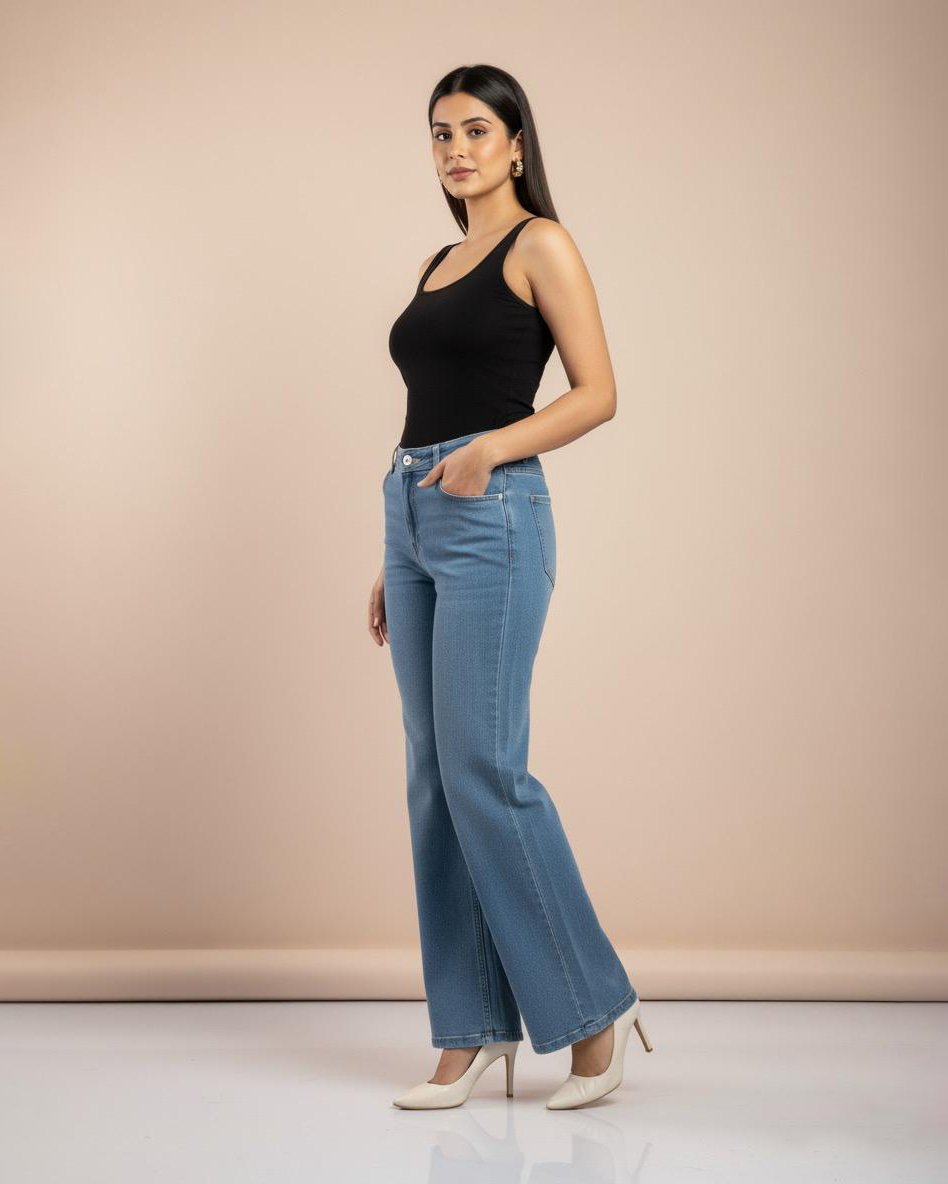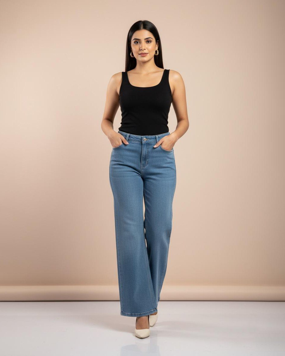 LA00155-Jeans pants-(Denim-High Rice stretchable)Color-Classic blue-Size-(32 34 36)