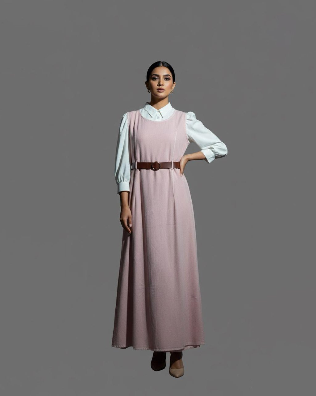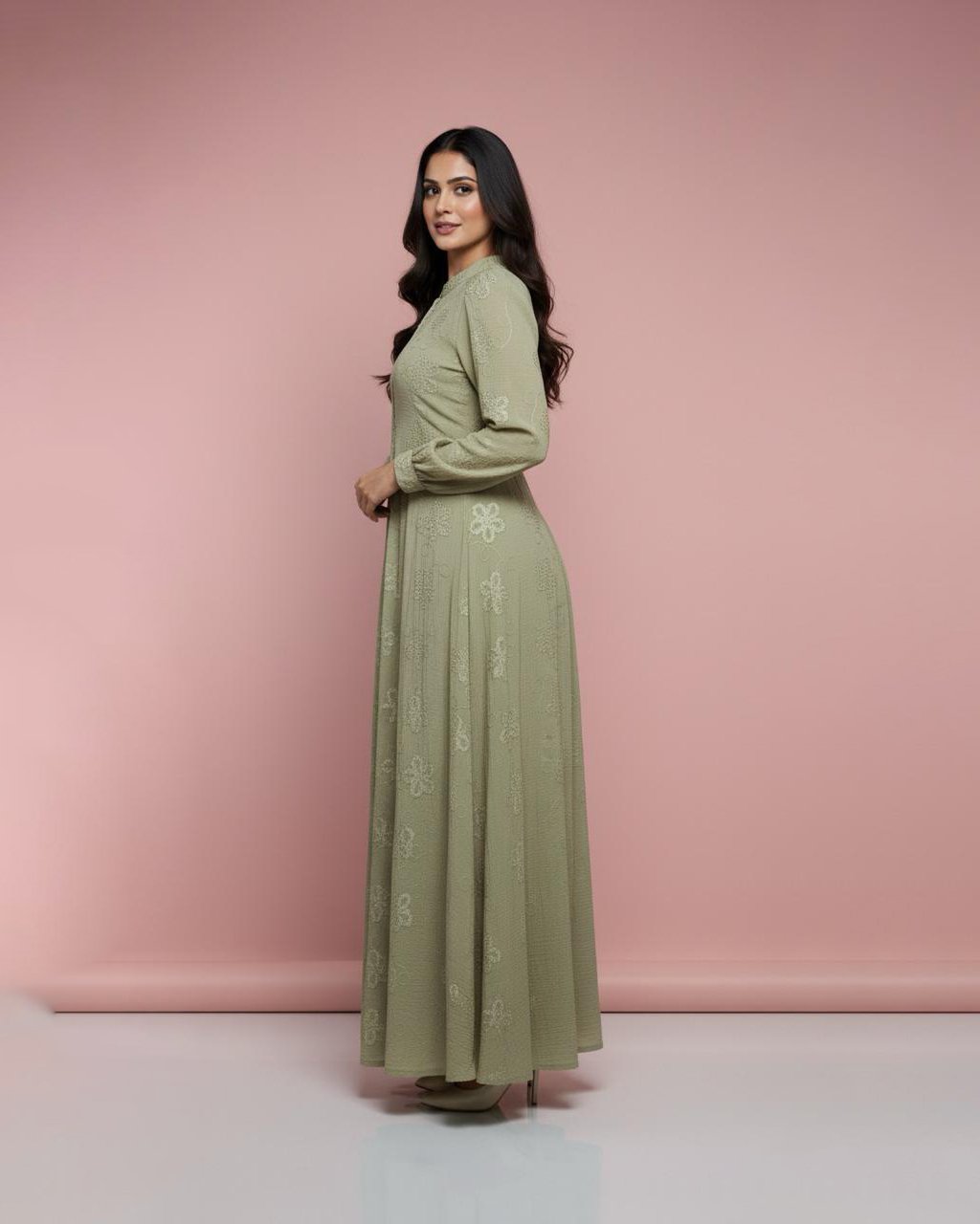 LA00174-Maxi dress-Imported fabric-Colour-Olive green,Sandy brown,Purple,Ash,Peach-Freesize