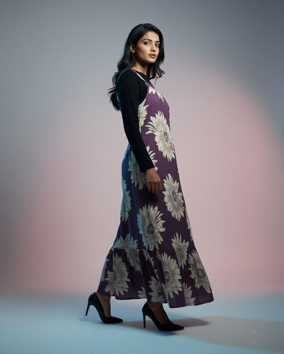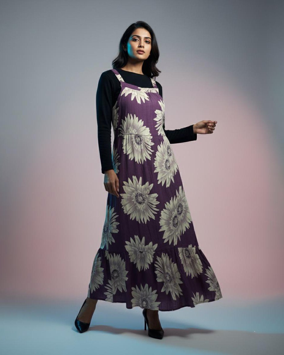 LA00160-Pinafore set-Fabric-Blend cotton-Digital print-Color-Mustard yellow-Orange-Purple-Free size