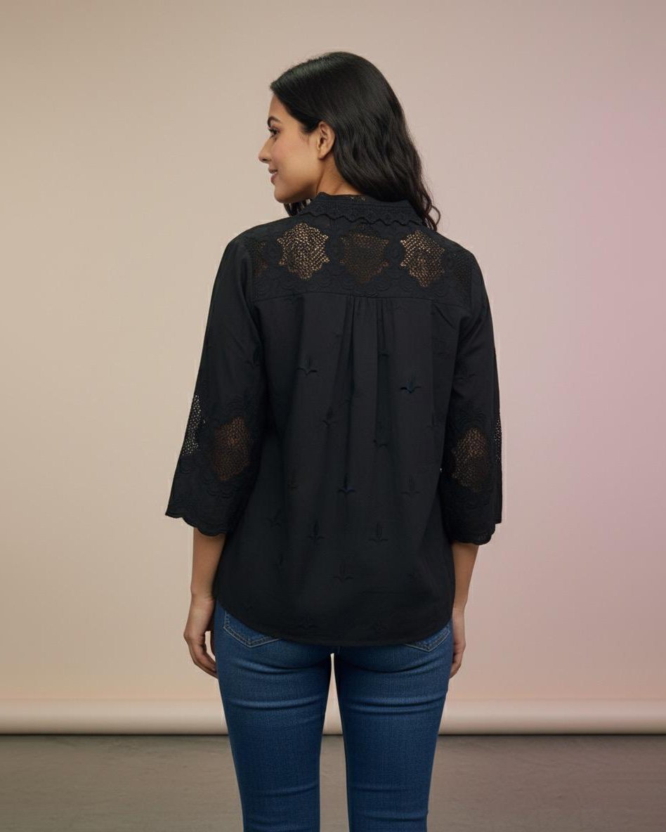 LA00131-3/4 Sleeve Button shirt Fabric-Chiffon-Color-Black-Brown-Pastel green-Jade green-Size(M L XL)