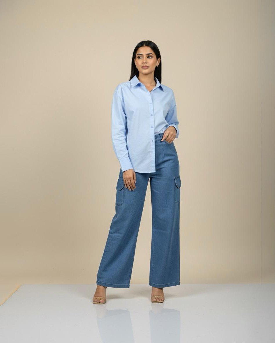 LA00138-Denim Top (Light denim)-Color-(Dark blue-Light blue)Size-(S M L)