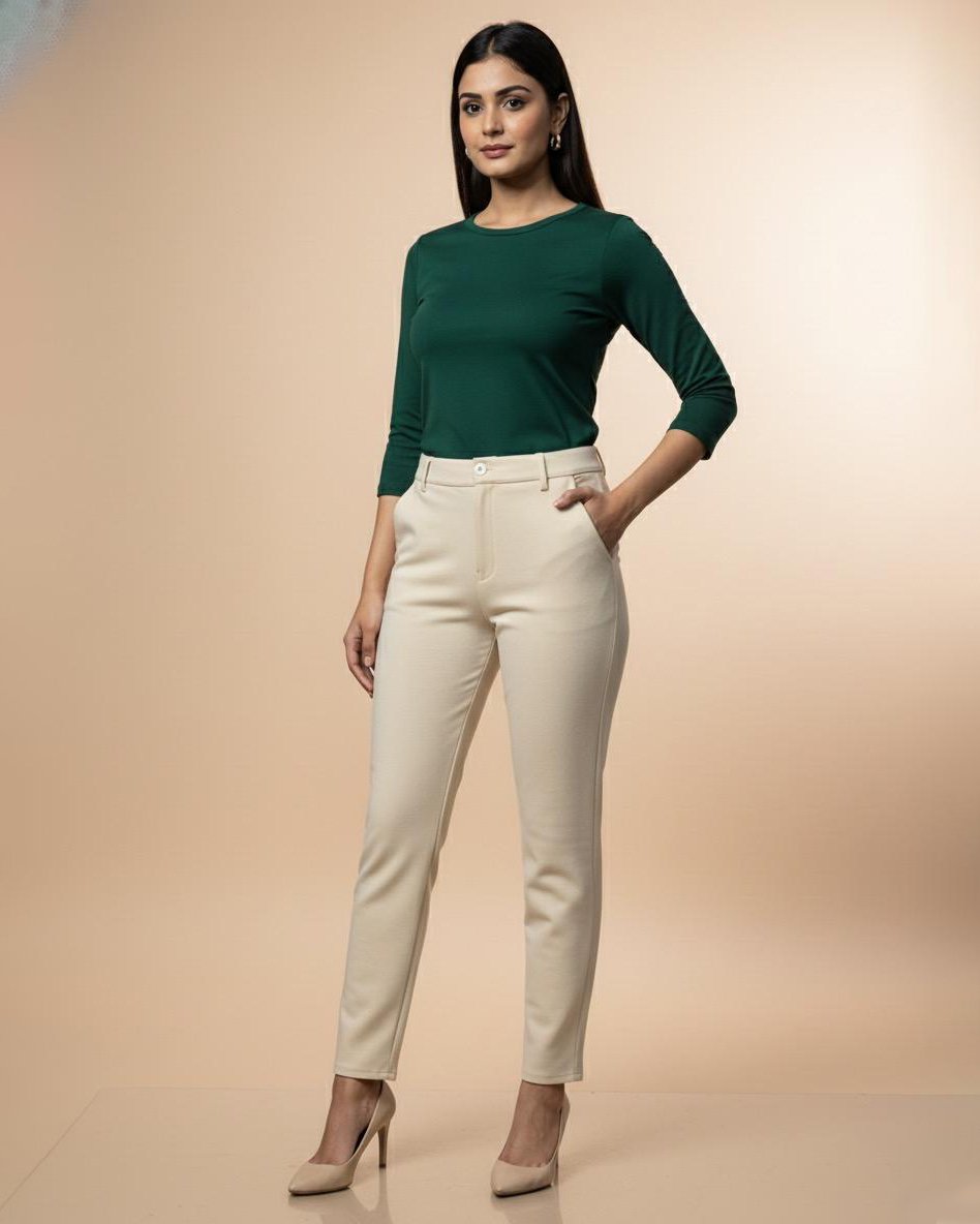 LA00148-Straight leg pants-Fabric-Blend cotton(stretchable) Color-Ivory Size(28 30 32)