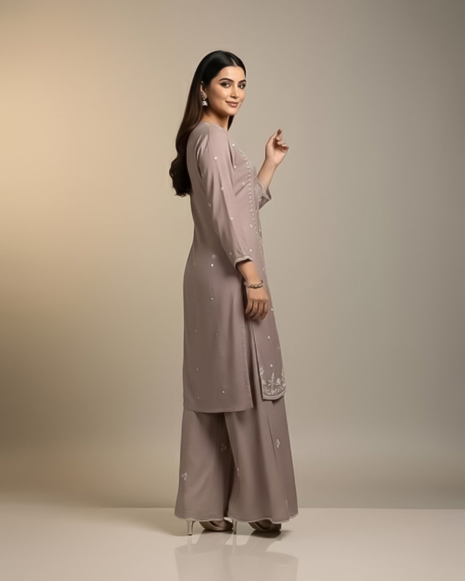 LA00181-Partywear Three piece set-Fabric-Chinone-Hand worked-Color-Lilac-Size-(L XL XXL XXXL) ₹ 4,399.00