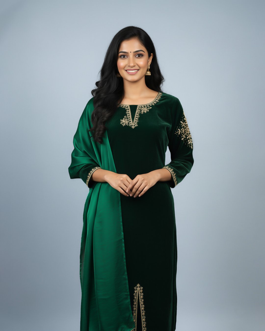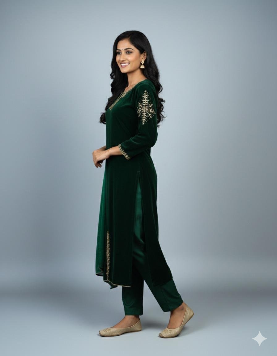 LA00178-Party wear 3 piece set-Fabric-Velvet and Fendy-Colour-Green-Work-Hand work-Size-(M L XL) ₹ 3,799.00