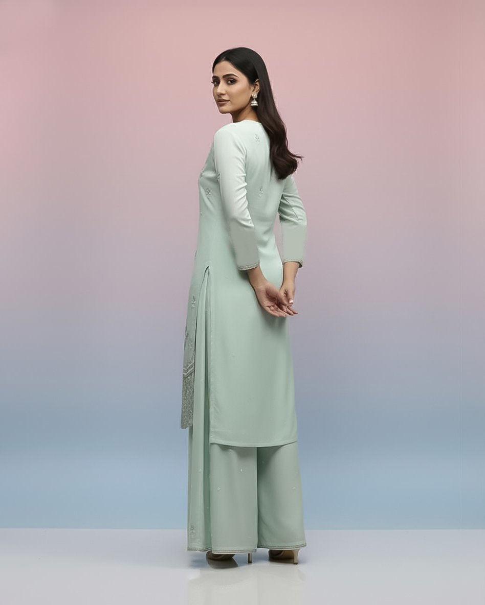 LA00179-Partywear Three piece set-Fabric-Chinone-Color-Mint green-Hand work-Size-(L XL XXL XXXL) ₹ 4,699.00