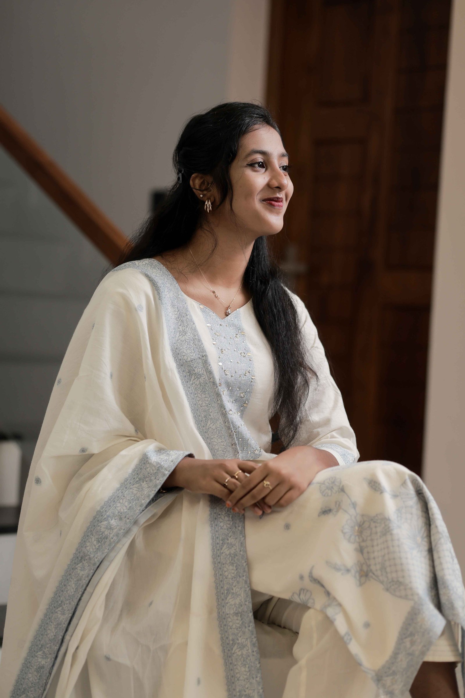 LA00087-Three piece set Fabric - Dolla silk - Weaving color - Cream (M, L, XL) ₹ 2,899.00