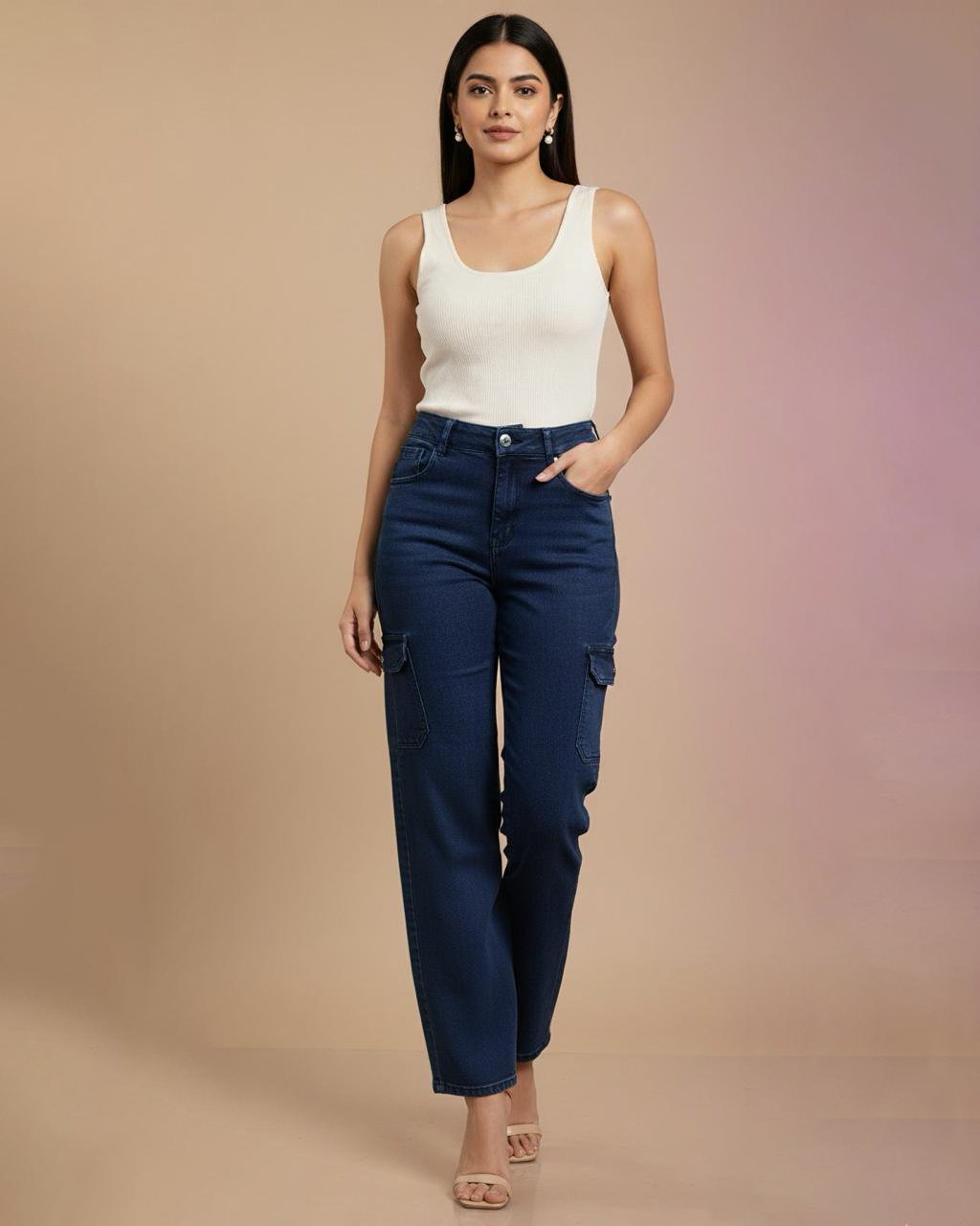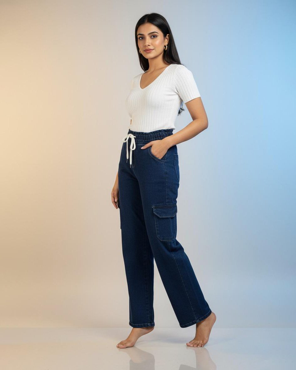 LA00151/1-Jeans pants(Denim-High-Rice stretchable)-Colour-Navy blue-Size-(28 30 32)