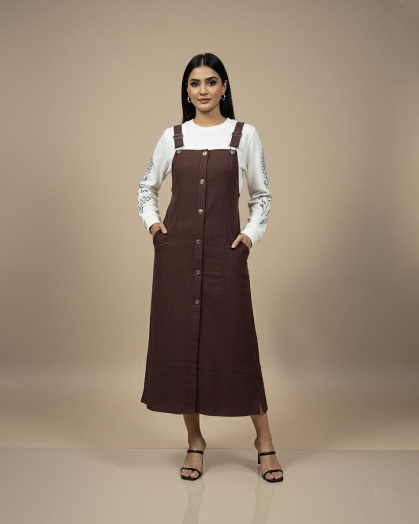 LA00161-Two piece Pinafore set-Fabric-Blend cotton-Color-Maroon-Green-Free size