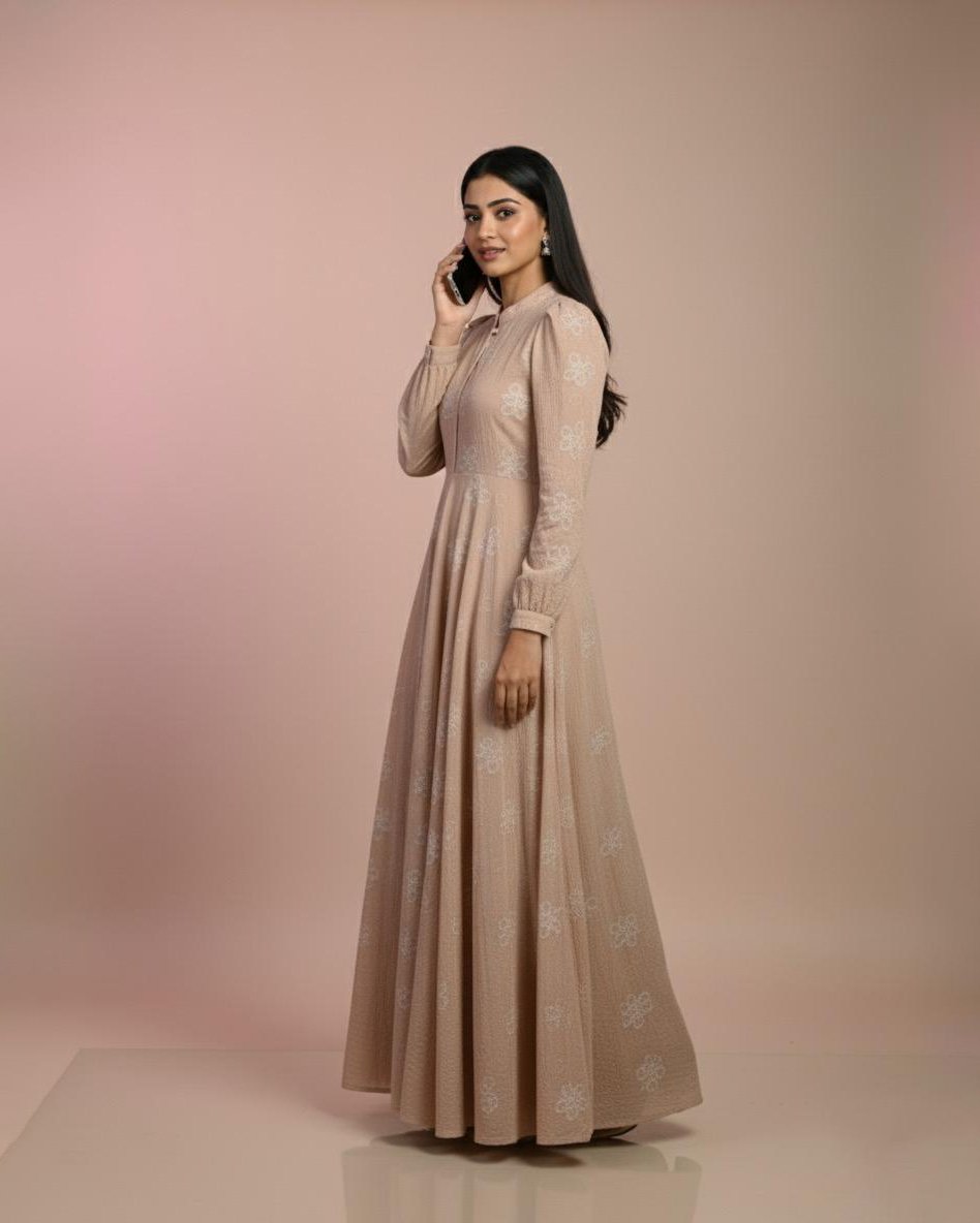 LA00174-Maxi dress-Imported fabric-Colour-Olive green,Sandy brown,Purple,Ash,Peach-Freesize