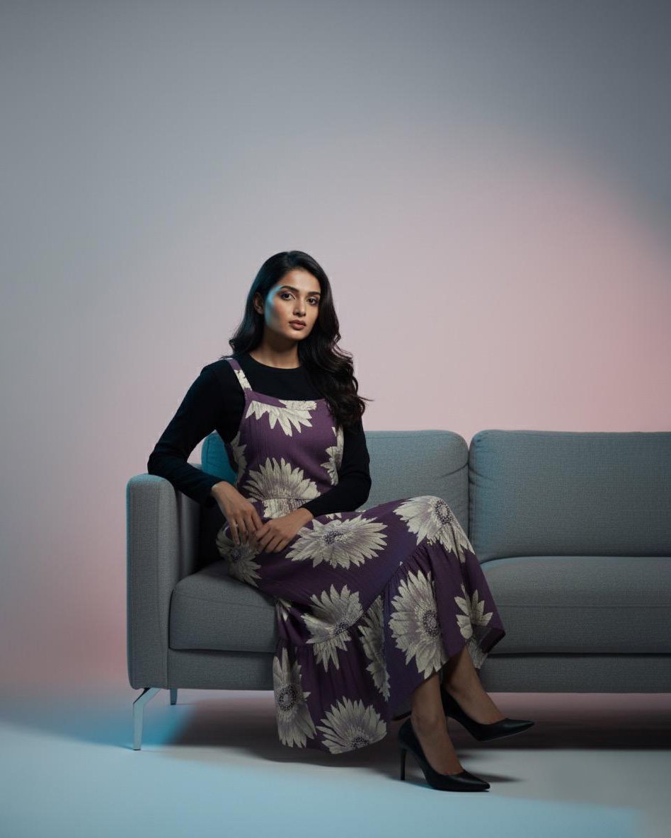 LA00160-Pinafore set-Fabric-Blend cotton-Digital print-Color-Mustard yellow-Orange-Purple-Free size