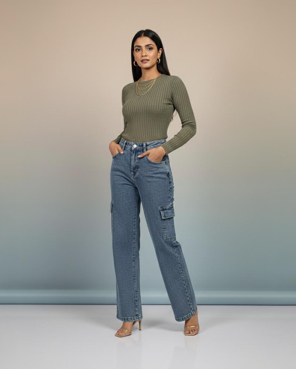 LA00151-Jeans pants(Denim-High-Rice stretchable)-Colour-Ash(faided)-Size-(28 30 32)