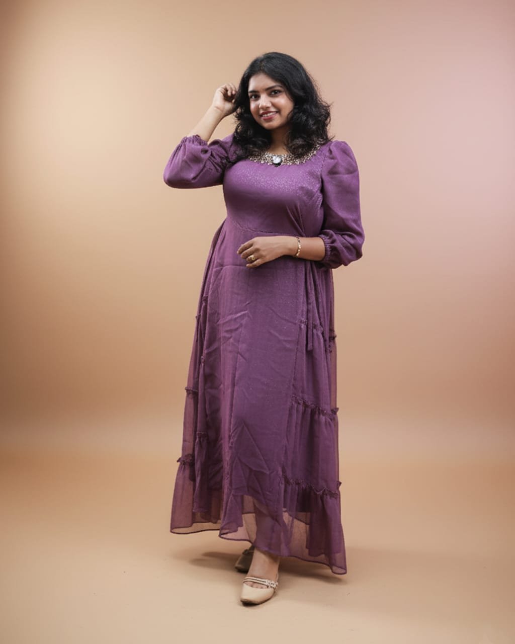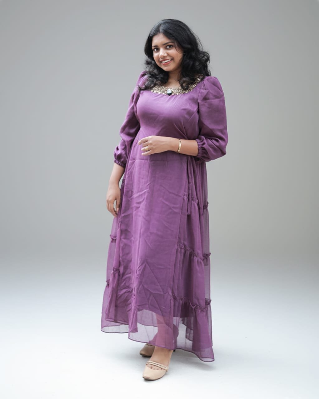 LA00175-Party wear gown-Fabric-Shimmer georgette-Color-Purple-Work-Hand work-Size(M L XL XXL XXXL)) ₹ 1,649.00