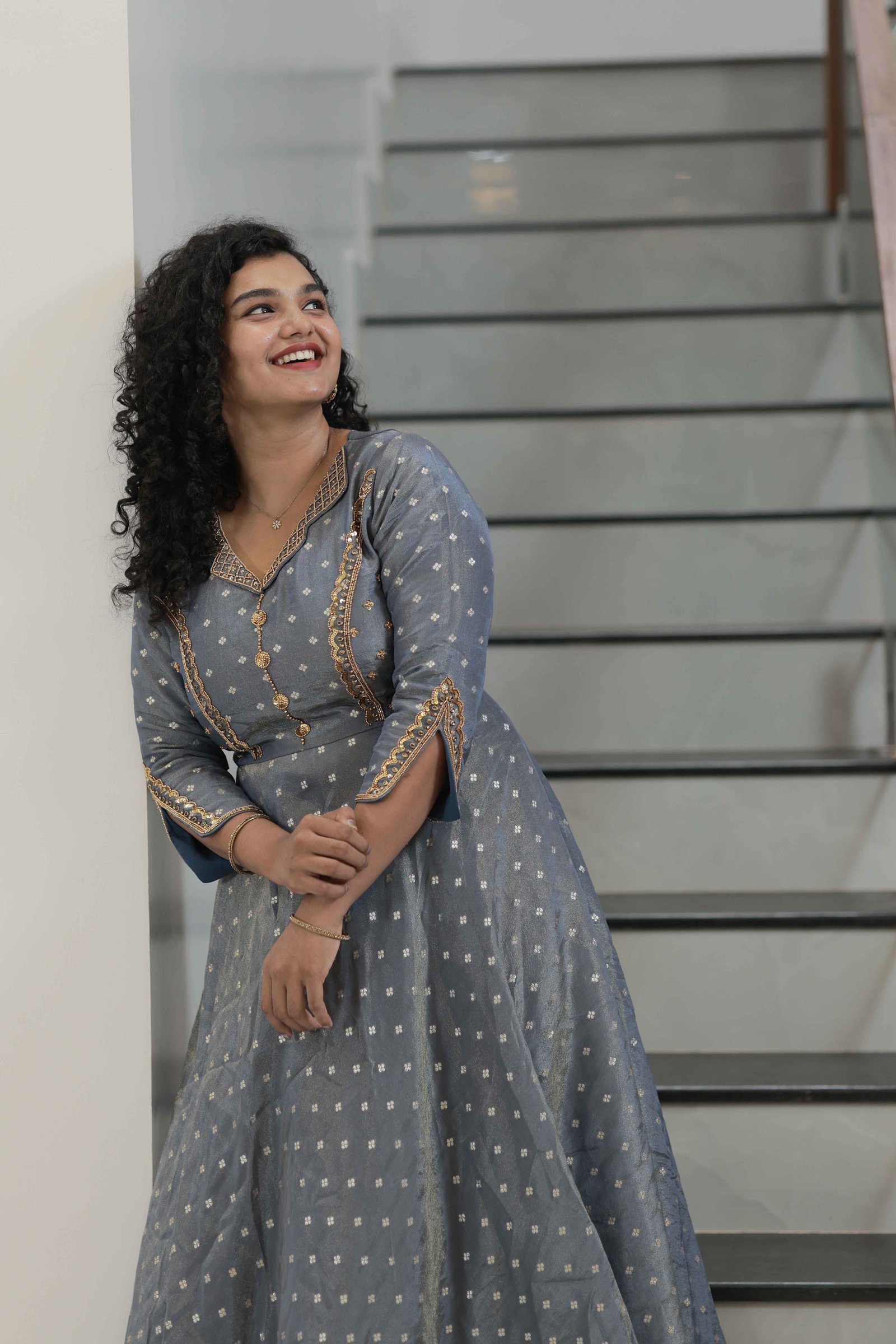 LA00082-Party Wear Gown - Tissue Shimmer - Ash - Hand Work - Size (S,M.L,XL,XXL,XXXL) ₹ 3,699.00