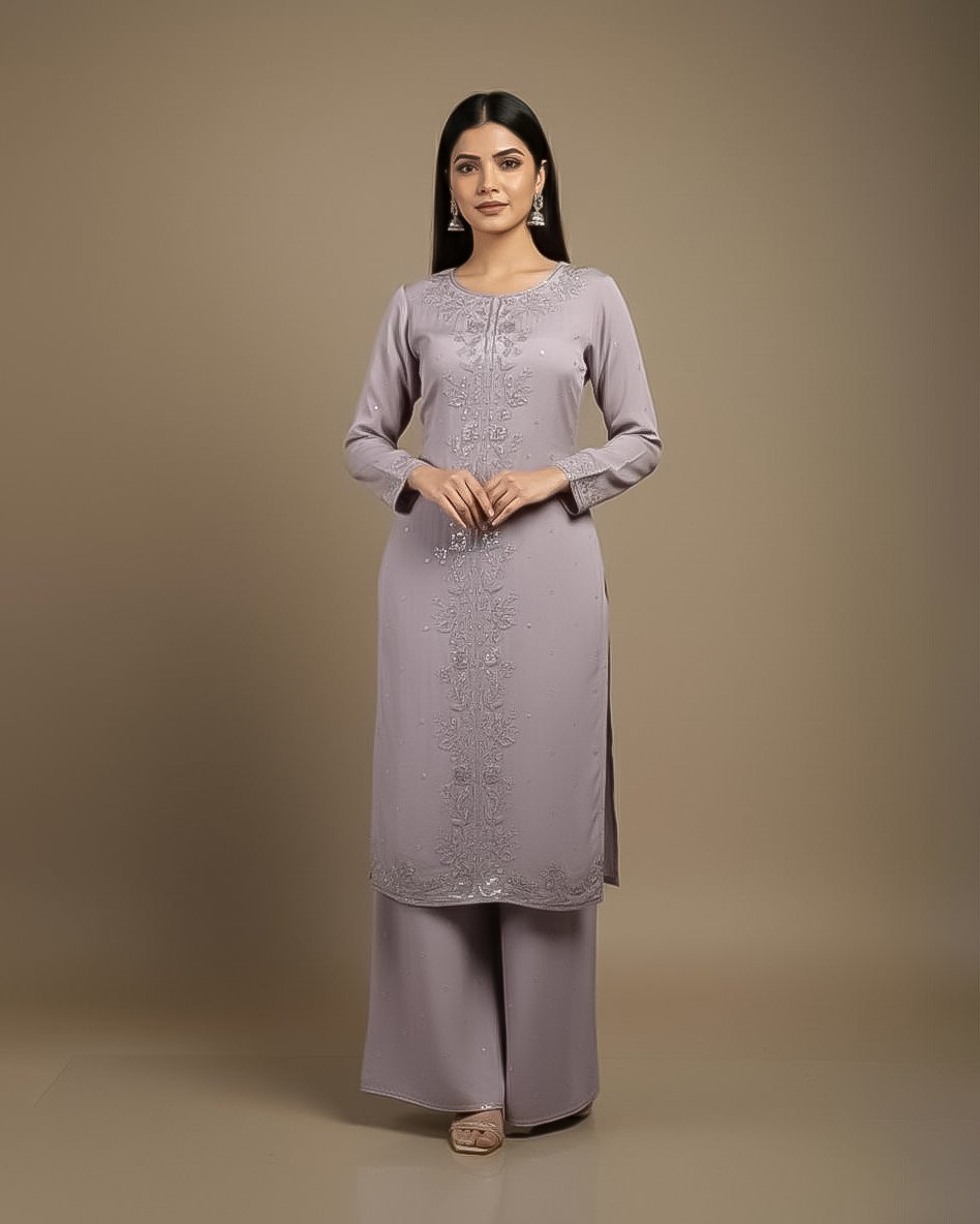 LA00181-Partywear Three piece set-Fabric-Chinone-Hand worked-Color-Lilac-Size-(L XL XXL XXXL) ₹ 4,399.00