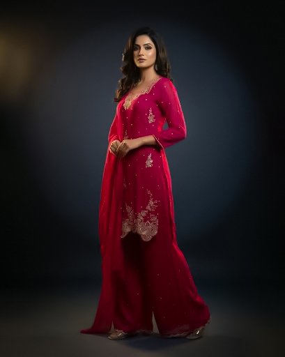 LA00180-Three piece set partywear-Fabric-Chinone-Hand work-Color-Magenta-Size-(L XL XXL XXXL) ₹ 4,499.00